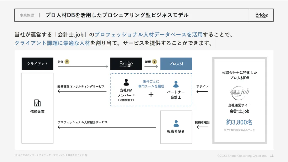 - ブリッジコンサルティンググループ株式会社 – 事業計画及び成長可能性に関する説明資料