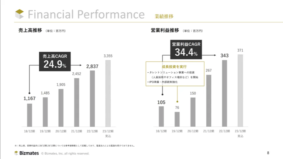 - ビズメイツ株式会社 – 事業計画及び成長可能性に関する事項