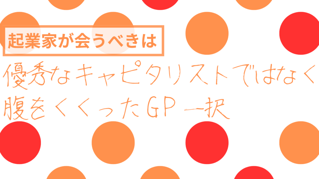 初期スタートアップが話すべき相手は GP(General Partner)一択 です。